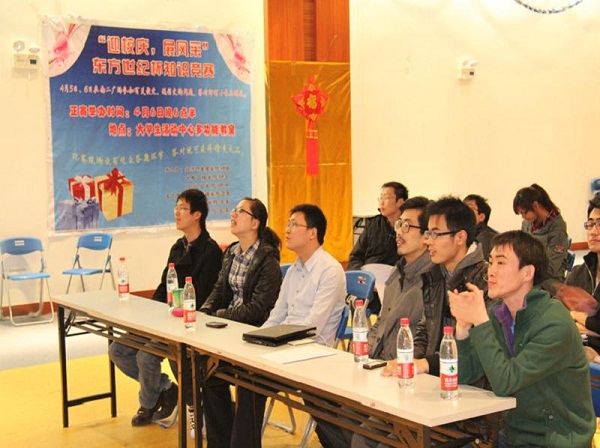 研究生会联合举办的“迎校庆,展风采”东方世纪杯知识竞赛在大学生活动中心多功能厅举行。三院研会主席亲临现场,为选手们加油助威。
