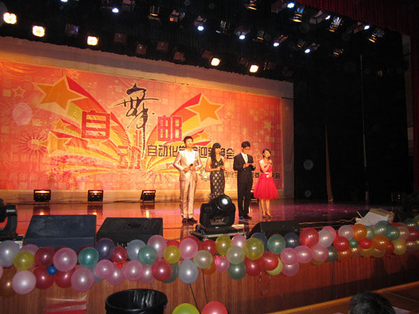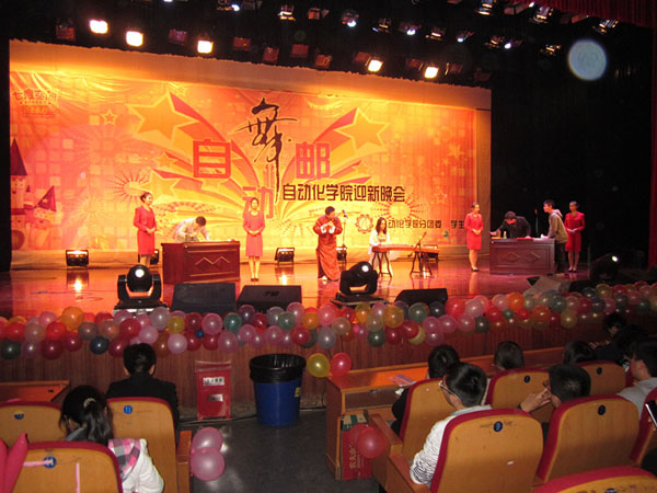 重生乐队金属感的开场曲立即点燃全场。随后主持人隆重登场,拉开晚会大幕。在节目音韵书香中,自动化学子展示纷繁才艺,新生辅导员贾昊鑫老师则用书法写下对新生的祝福。十佳歌曲串烧全场同唱;抽奖环节妙趣横生高潮迭起;话剧《曾经后续》赢得掌声不断;婀娜美妙的新疆舞、跳舞的男孩女孩、热力四射的大艺团群舞、青春活力的健美啦啦操、幽默诙谐的江南style、热情奔放的最炫民族风……让观众一次过足舞动之瘾。最后晚会在师生合唱的一曲《仰望星空》中落下帷幕,并表达了轮盘在线