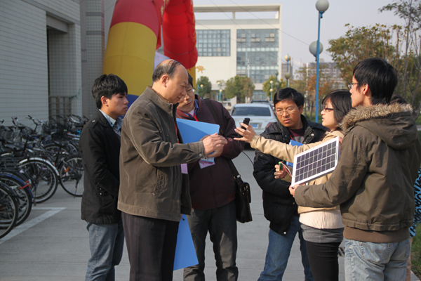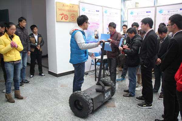 高翔老师指导、大三学子吕阳凯制作的《载人平衡车》的成功展示让观众惊叹不已;由轮盘在线