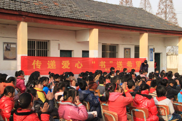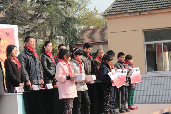 党委副书记高志华代表南邮爱心社承诺将长期做好支教志愿活动,用爱心为孩子们输送知识、传递希望,他鼓励孩子们要多读书、读好书,通过知识改变自己的命运。最后他对南京图书馆对本次活动的大力支持表示感谢。南京图书馆读者服务部朱志伟主任在发言中提到南邮爱心社长期坚持的义务支教活动和自发捐书举动令他们十分感动,南图得知有该项活动后立即决定将“传递知识,书送希望”活动纳入南图“爱心无界,知识无边”的系列活动中,将围绕“五个一”系列活动展开,分别是向小朋友捐赠一套图书,为小朋友免费办理一张少儿借阅证,请学生代表参观一次南京图书馆,给学生代表进行一次电脑培训,请学生代表观看一部电影。随后南邮和南图的领导为孩子们赠送了图书和南图少儿借阅证。最后由张敏书记和朱志伟主任分别进行了“轮盘在线
