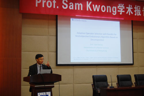 副院长荆晓远教授主持。理学院李雷院长与赵洪牛副院长参加了报告会。 Kwong教授在报告中首先介绍了多目标优化算法的相关基本概念,然后结合在IEEE Transactions on Evolutionary Computation 2012年发表的论文,重点介绍了他所领导的课题组如何使用自适应的方法来提高多目标寻优效果的情况,最后Kwong教授详细介绍了相关最新研究工作和研究方向。报告会后,Kwong教授热情解答了老师和同学们所提出的各种问题。 主讲嘉宾简介:Kwong教授现任香港城市大学计算机系主任,在德国哈根大学获得博士学位。在视频编码、优化等相关领域发表了250余篇高质量学术论文,1997年编著的“Genetic Algorithm for Control and Signal Processing”获得了Springer出版社最畅销书的荣誉。他现在担任IEEE Transactions on Industrial Informatics, IEEE Transactions on Industrial Electronics, the Journal of Information Science等多个国际知名期刊的副主编。  |