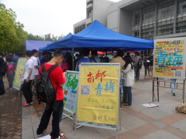 2013年5月7日中午,南邮爱心社与学通社在南二广场摆摊进行“南邮青梅”的发布活动,爱心社在宣传青梅的同时也对接下来的“红五月·义工体验月”活动进行了预热。