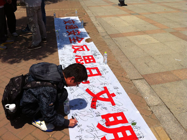 在4月30日“全国交通安全反思日”即将到来之际,由爱心社牵头联合“陌上花”爱心联合会兄弟高校举办的“有序乘车,安全出行”活动于2013年4月28日在仙林大学城有序展开。