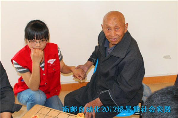 2012级“邮爱”实践小分队来到了南京市栖霞区老人颐养中心开展公益志愿服务活动。