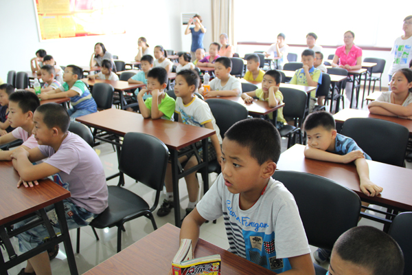 老师的关心支持和南湾营社区领导的亲切指导。参加活动的小朋友进入会议室,他们看到桌上摆放的各类机器人,既好奇又兴奋,“机器人!机器人!”他们纷纷用稚气的声音欢呼着。活动正式开始,赵同学向孩子们问了一个问题“你们心目中的机器人是什么样子的”?这一问题将小朋友带入了机器人的世界,他们争先恐后地回答,有的说“机器人可能会害人”有的说“机器人会爆炸”还有的说“机器人力大无穷”,赵同学通过视频放映的形式告诉了孩子们机器人到底是什么,他为他们讲解了机器人的发展历史和发明构成。