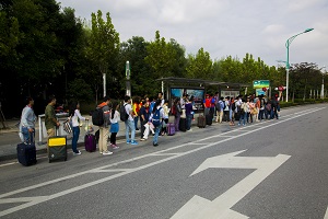 从上午9点半开始,爱心社成员就出现了南邮门口的公交车站。同学们穿上红马甲后就积极开展工作,无论是举牌引导乘客排队,还是主动帮有需要的乘客提行李,他们都不怕累、不怕苦,体现了轮盘在线