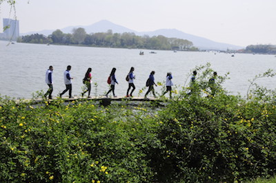 本次活动由2013级辅导员杨中婕老师带队,院心理健康协会主席褚雪汝同学策划。参与活动的同学穿着整齐的校服,围绕着玄武湖缓步行走,信步自由中也不乏井然有序。在活动结束前的休息时间里,各班班长和心理健康协会成员还给大家带来了精心准备的“快闪”节目,表演了两支充满青春活力的舞蹈,赢得了阵阵掌声。