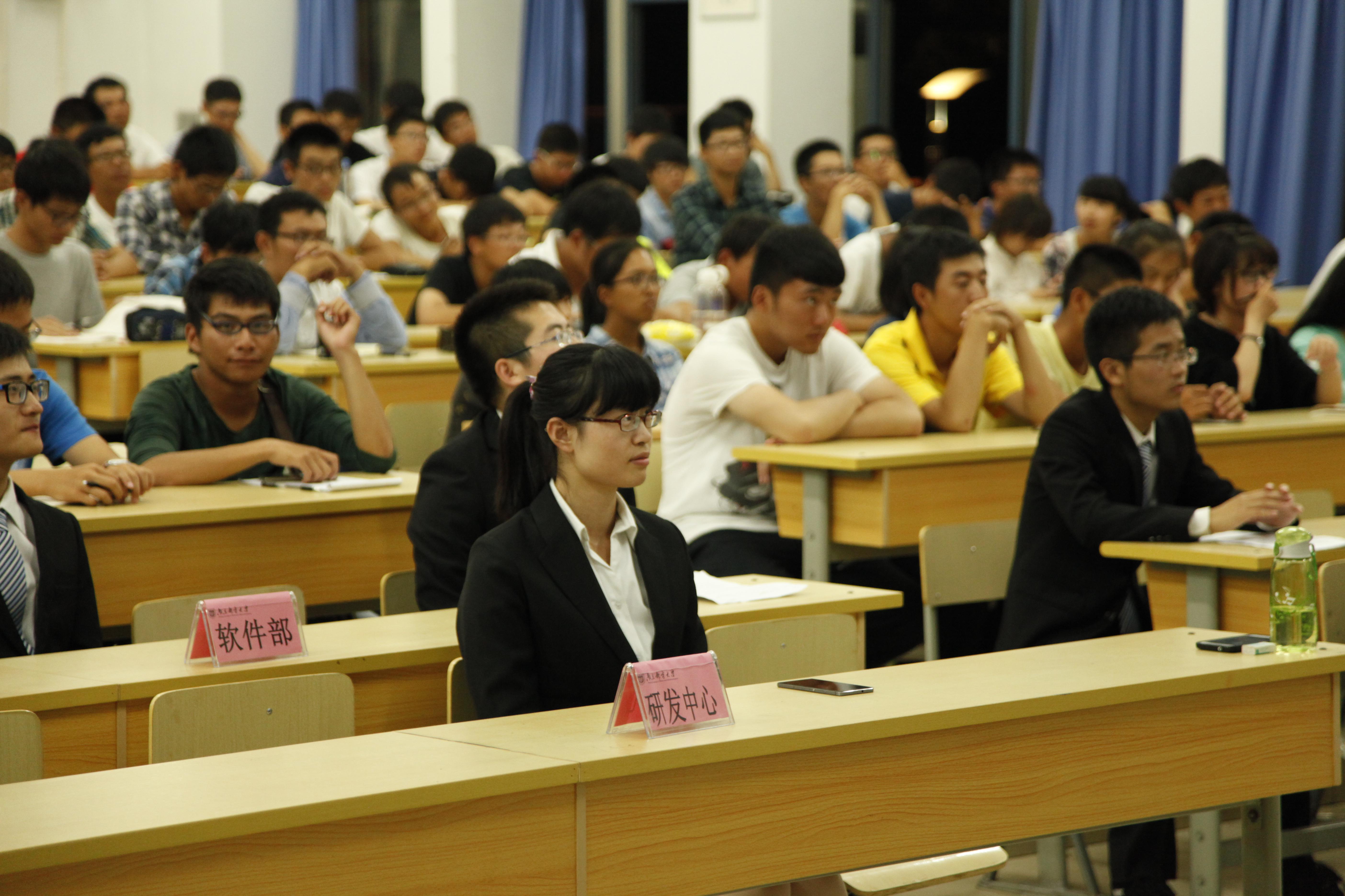 2015年9月26日晚六点半,轮盘在线 科学与技术协会在教4-101召开了2015届新生第一次全会。轮盘在线 科协主席团,研发中心,优秀学长代表,及各部门部长带领各自部门的新成员们参加了此次会议。