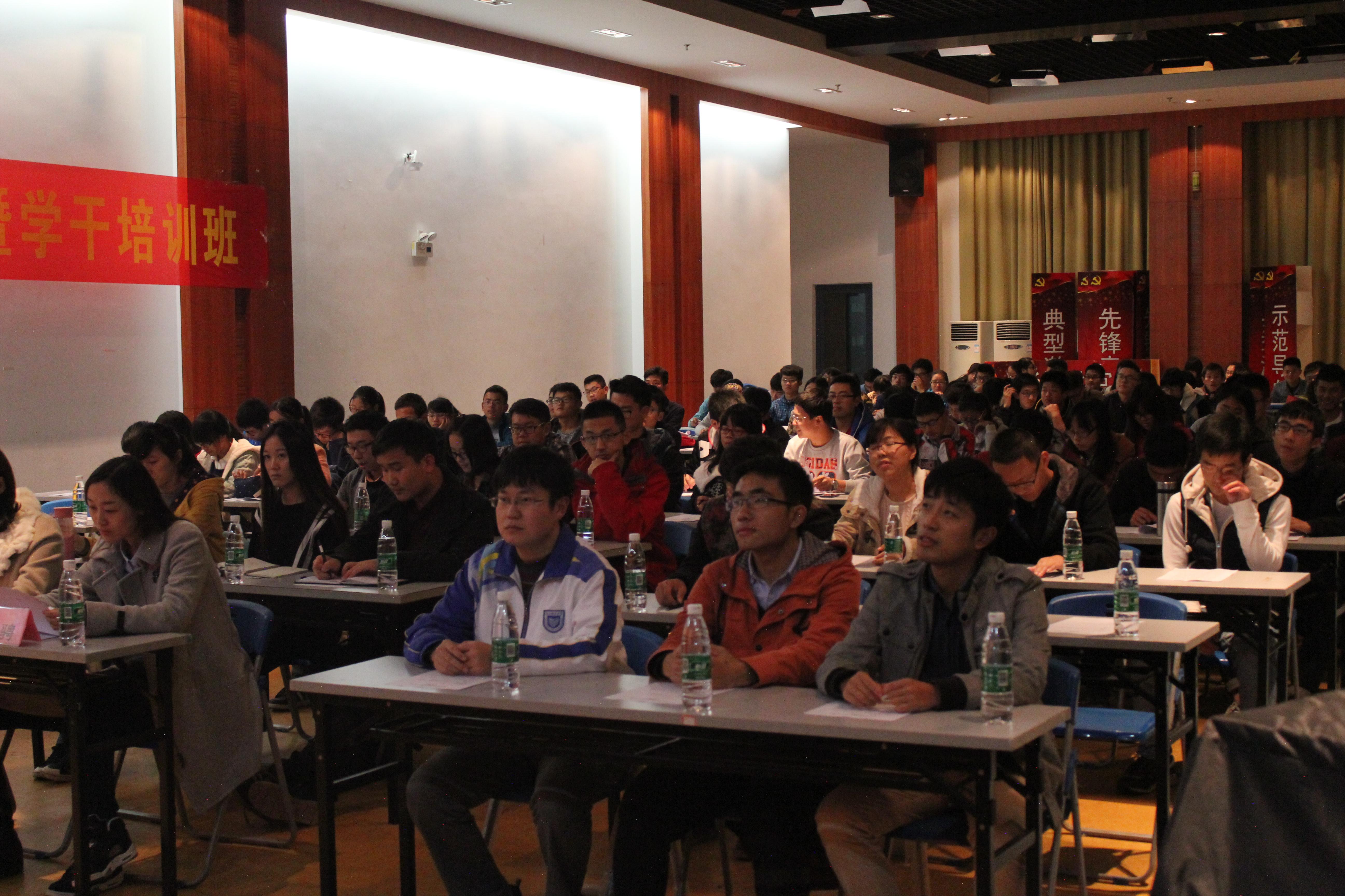 的讲座体系、文体活动、社会实践及各项比赛作了详尽的说明,并鼓动同学们积极参加各项创新活动。接下来,上期团校优秀成员代表李前达向大家分享了他在团校中的收获,本次团校新成员代表丁凯伦则向大家展现了一定会认真学习的决心。最后,大一新生辅导员马骋老师由一个生动有趣的故事开始自己的发言,她向这一期的学员们提出了具体的要求,也强调了团校成员学习具备各方面能力和意识的重要性,精彩的发言时不时赢得观众们的阵阵掌声。