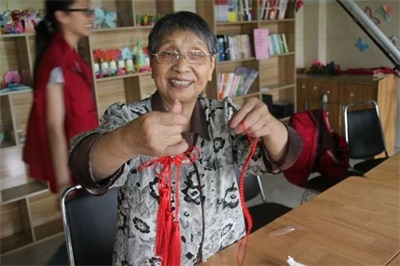 今天在栖霞颐养中心,队员们的主要活动是教老人编中国结。中国结虽小,但却是中国民间百姓智慧的结晶。老人们由于年纪大了手脚不便,看东西也不大清楚,所以学起来有些吃力。但是队员们都耐心地为老人讲解,手把手地教他们编织。在这个过程中,老人们和队员们都收获了快乐与温暖。在南京图书馆,队员们继续进行归类整理杂志的工作,各个学科领域,各种主题的杂志展现了科技的发展和市民们的丰富文化生活。即使过程非常枯燥与繁琐,队员们依然认真努力地完成了工作。