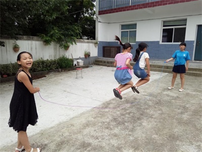 绘画结束后,在实践团队员的带领下孩子们去到户外进行“浑水摸鱼”比赛,孩子们玩的十分开心。下午为了锻炼孩子们的身体素质及体育团队合作精神,实践团队员们准备了跳绳比赛以及跑步接力赛。