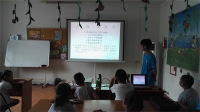 在读书分享会开始之前,实践团队员先以一首《冬夜读书示子聿》引入课题,从古人的角度指明了读书的方法和意义。然后带领孩子们一起观看短片《匡衡凿壁偷光》和《陈平忍辱苦读书》,以动画短片的形式讲述古人是如何努力读书的,孩子们专心致志,收获颇多。最后,队员同孩子们一起玩了游戏——心有灵犀,在欢声笑语中度过了愉快的一天。
