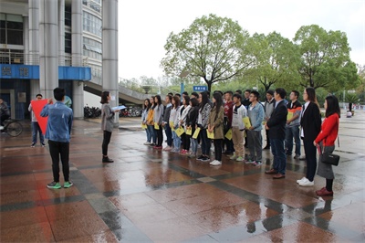 2016年10月15日上午,轮盘在线 轮盘在线 “青年先锋大课堂”活动正式拉开帷幕。上午8:15,轮盘在线 党委副书记杜月林老师、分团委书记汪颖老师、14级辅导员张逗老师、15级辅导员马骋老师以及所有学员来到学校南门大鼎处,参加了开课仪式。