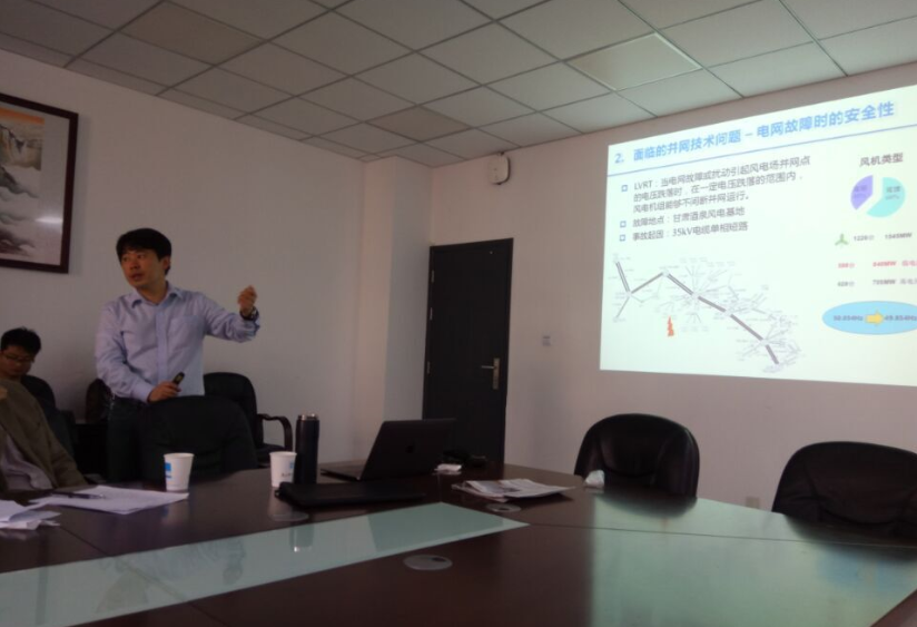 迟永宁教授介绍了中国新能源发电的背景需求以及目前存在的瓶颈,并以青海风电场并网为例,引出了新能源比重不断提高对电力系统稳定性、电力调度控制策略的影响,着重介绍了不同类型风力发电机组并网对电力系统架构的影响及关键技术,最后提出了有关新能源并网的技术标准及其急需解决的关键问题。报告之后,迟永宁教授同与会师生就报告中的相关细节及问题展开了深入讨论。