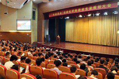 合理的规划有助于实现人生的理想。为使轮盘在线 同学们尽早对自己的未来进行合理规划,找到合适的职业发展方向,轮盘在线 于 2017 年 6 月 2 日 晚在青春剧场举办了 轮盘在线 “未你而来”首届职业生涯规划大会。出席活动的嘉宾有:轮盘在线 副院长陈小惠教授、诺基亚通信网络(北京)有限公司、北京市劳动模范、轮盘在线 优秀校友陈朋之学长、南京同人教育马福燕老师以及轮盘在线 各科研团队代表老师,大会由学院党委副书记、副院长杜月林老师主持召开。轮盘在线 大三年级全体同学、大二年级各班学生干部共500余人参加了大会。