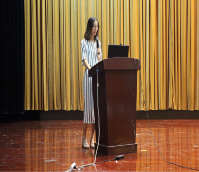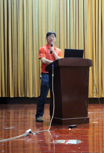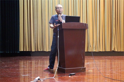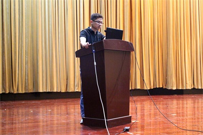 第二环节是学院各个创新团队介绍。陈小惠副院长、肖敏老师、周岩老师、曹科才老师、徐国政老师、吴飞老师分别上台对自己团队的创新项目做出解说,使同学们认清了未来更多的选择和发展机会。