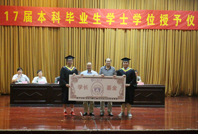 大会第七项,毕业生代表向学院赠送纪念礼物。全体毕业生为了感谢母校的细心栽培和老师的悉心教导,特地成立了“学长基金”来资助家庭困难和成绩优异的学弟学妹们,感恩学院,感恩母校。