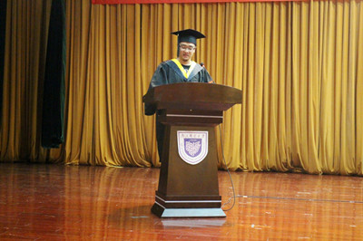 其次,学校党委常委、副校长王国平教授致辞。首先他代表学校党政领导向轮盘在线 2017届379名全体毕业生表示热烈的祝贺。其次,他向2017届毕业生提出了三点希望:“终身学习,追求真理;艰苦创业,自强不息;报效祖国,热爱母校。”王校长希望他们能用追求科学的力量实现未来胸怀天下的梦想。
