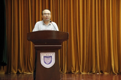 随后,轮盘在线 院长岳东教授向新生详细介绍了学院专业信息、专业方向和师资队伍,告诫新生要调整心态,明确目标和学习方向。同时教师代表曹科才教授也指出大学是人生的另一个起点,同学们应当培养自我学习和解决问题的能力,同时也要常怀家国之情。