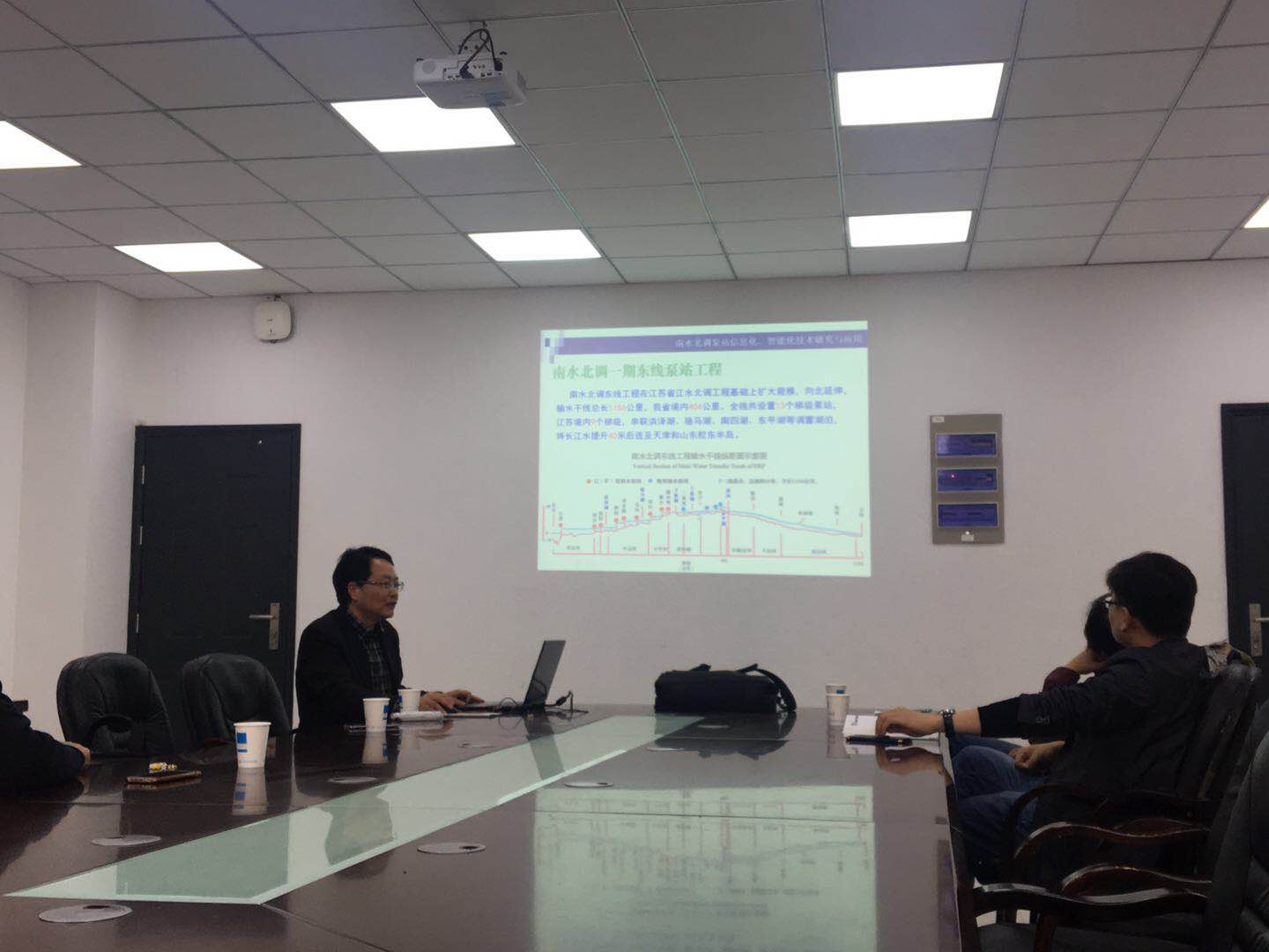 扬州大学水利与能源动力工程轮盘在线 唐鸿儒教授于2018年4月13日下午在轮盘在线做了“南水北调泵站信息化、智能化技术研究与应用”的学术报告。报告会由测控技术与仪器系主任王勇教授主持,轮盘在线 的部分教师和学生参加了本次学术报告会。唐鸿儒教授从国家南水北调的重大战略意义,到泵站设备的关键技术,如设备健康监测和运行状态监测等展开了详细的论述,并对与会学生提出的问题给予了详细解答。唐鸿儒教授与轮盘在线教师在水利装备和智能监测等相关研究领域进行了交流,表示后续将加强双方在此领域的相互合作。