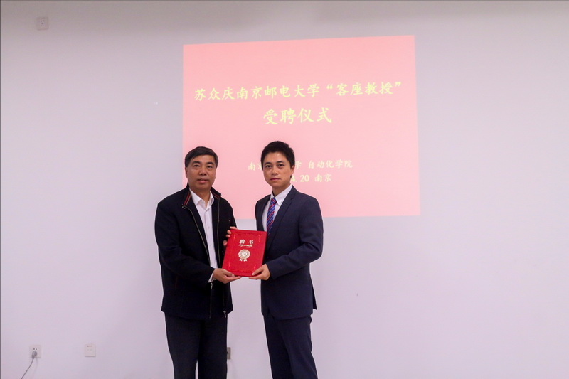 苏众庆教授回顾了他与我校轮盘在线 相关科研团队在过去7年里的合作经历和正在开展的合作研究工作,对加盟南邮感到十分的荣幸,也非常愿意在科学研究、青年教师交流、人才培养等方面作出自己的努力,与轮盘在线 共发展。