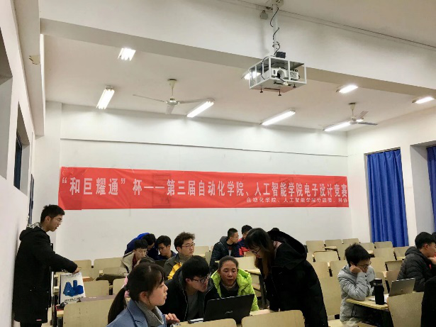 在“和巨耀通”杯宣讲会结束之后大一新生们就着手准备,从组队、选题到准备材料、制作作品最后完善作品及作品报告,这期间每个参赛队伍都表现出极高的热情与投入,科协中干更是不遗余力的帮助他们。比赛前的每一天都可以在院科协活动室看到参赛队员认真焊接,调试代码,相互讨论,请教学长学姐的场景。尤其比赛前几个小时,大一新生们带着自己精心制作的作品在活动室进行最后的调试,在紧张刺激又相互调侃的氛围中等待着比赛的到来。