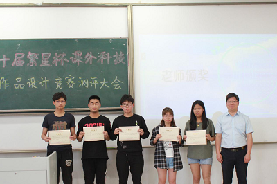 聘任仪式结束后,第十届繁星杯课外科技作品设计大赛测评正式开始,评委老师认真聆听了各组参赛队员的现场解说,并观看了作品的功能演示,悉心点评指导了每个小组。评选出一等奖何津玮等2组,二等奖何少鹏等4组,三等奖周鸿敏等6组。