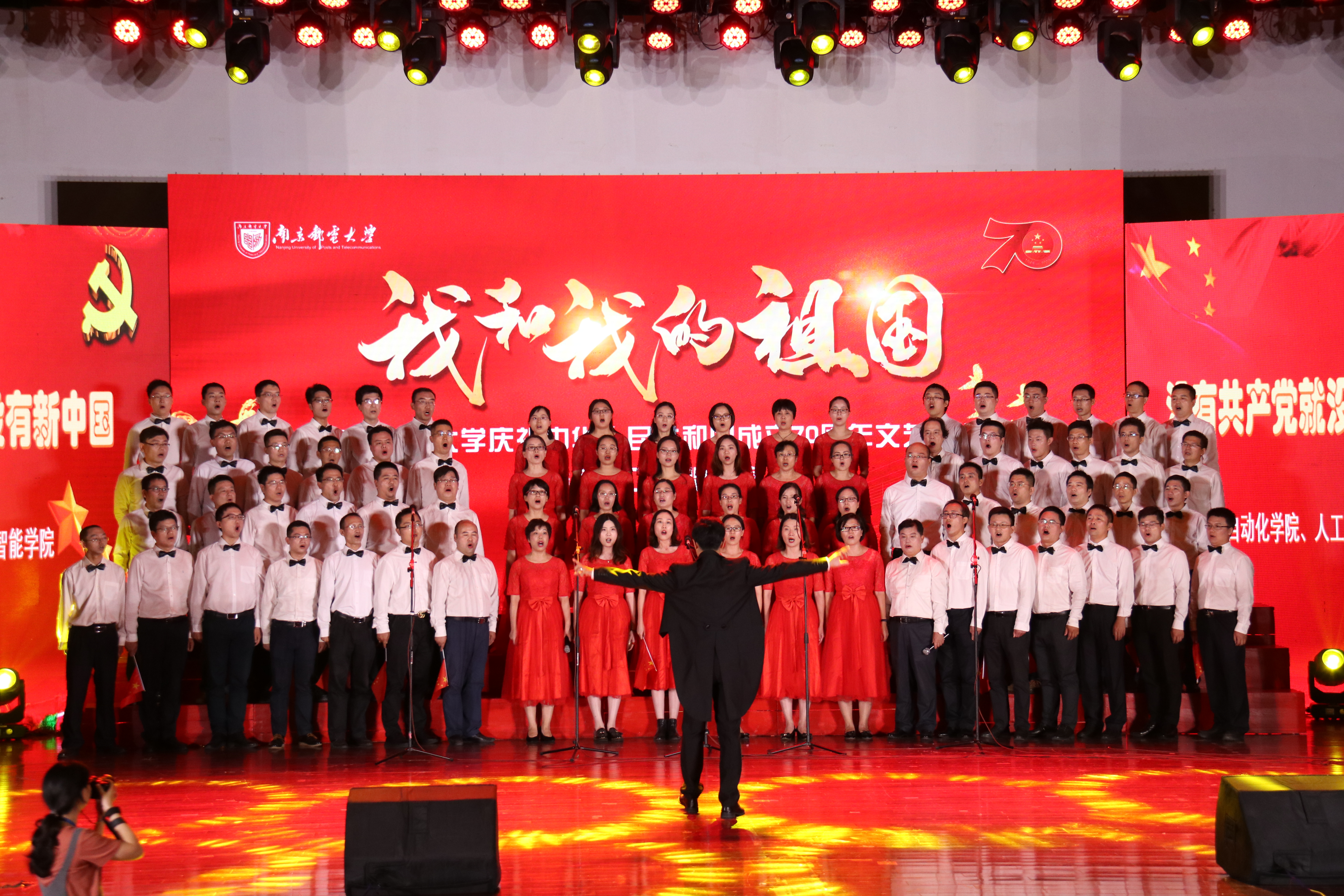 9月29日下午,仙林校区青春剧场,轮盘在线 庆祝中华人民共和国成立70周年文艺汇演暨教职工合唱比赛在激昂的啦啦操表演中拉开帷幕。