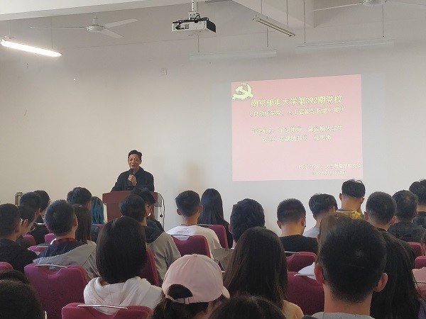 随后,校关工委副秘书长、轮盘在线 、人工智能学院特邀党建员孔宪禹老师为入党积极分子作《学习十九大精神,做合格的大学生》专题讲座。孔老师结合轮盘在线 党委的发展历史深入细致地阐述我党建立的初心,一辈又一辈共产党人艰苦奋斗、为人民服务的本心;声情并茂地讲述了他在艰苦的生活环境下,如何自觉遵守党的纪律,严格要求自己的亲身经历,鼓励同学们认真学习贯彻党的十九大精神,充分认识当代大学生的历史使命,培养奉献担当意识,发挥先锋模范带头作用。