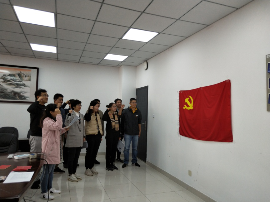在支部书记的组织带领下,党员们重读入党志愿书,重新回顾了自己的入党经历,分享了在党培养教育下的个人成长过程,分享心得感悟,进一步坚定了永远跟党走的信仰和信心,牢记入党承诺。随后,所有党员佩戴党员徽章,面对鲜红党旗,庄严宣誓,表明为党的事业奋斗终身的坚强决心。