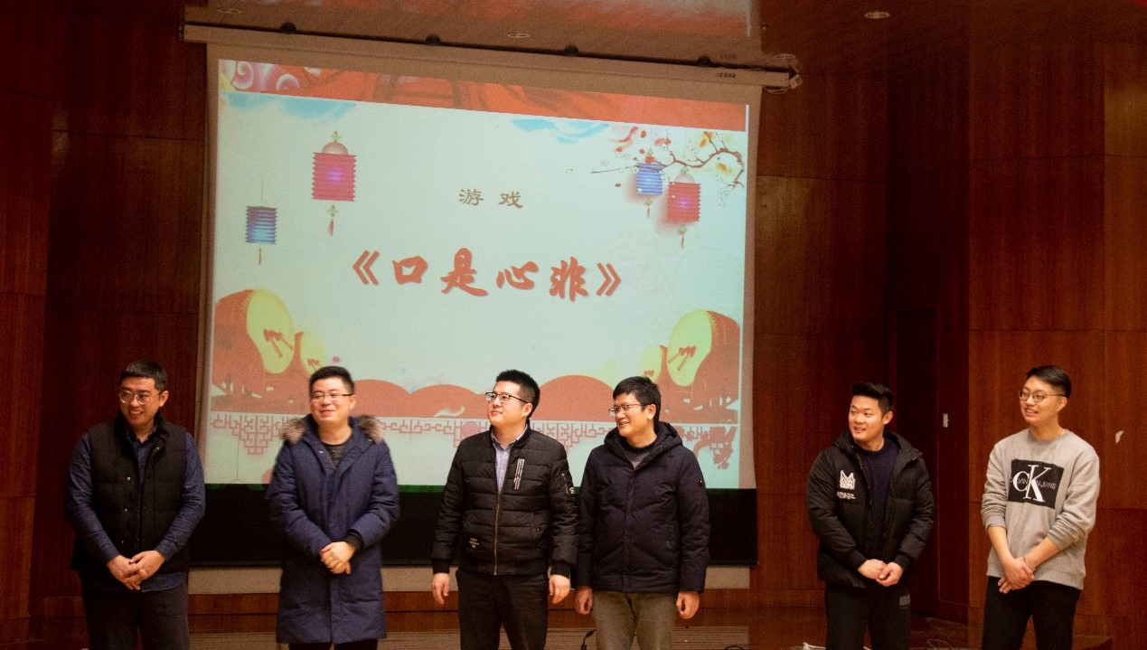 本次联欢会在宋杰老师独唱的歌曲《我爱你中国》正式开始,2019是伟大祖国诞辰70周年,欲以这首歌表达我们心中对于祖国母亲崇高赞美和无比热爱。老师们为这次联欢会做了精心的准备,表演形式丰富多样,节目内容精彩纷呈。岳东院长独唱了《当你老了》、谭彩铭老师演唱了《你的眼神》,歌声优美而抒情,现场顷刻间充溢着温馨和柔情。除了歌曲以外,语言类节目也是技惊四座,由先进院老师给大家带来的脱口秀,讲述了老师们在从事科研事业、工作闲暇、家庭生活、健康养生的奇闻趣事,引起了大家的共鸣,一时间多功能厅掌声不断;此外实验中心的四位老师也呈上了精彩表演——三句半《都挺好》,通过幽默诙谐的方式描绘了2019年轮盘在线 、人工智能学院取得的瞩目成绩,这些成绩都离不开每一个奋斗的自动化人。岳东院长除了歌唱以外,一篇《致橡树》的深情朗诵,更是情意深远,涤荡心灵,收获了无数掌声。姚金明老师的舞蹈《两个人》更是现场的气氛推向了高潮,振奋的旋律,曼妙的舞姿,场下掌声连绵而不绝。除了精彩的节目,同样也少不了紧张的游戏环节,老师们积极参与进来,配合默契,也赢得了满堂的喝彩。最后,联欢会在秦培宇老师动感街舞表演中圆满落幕。