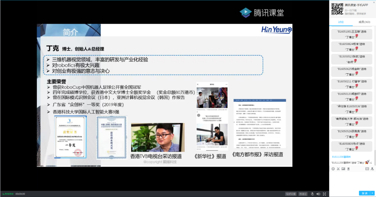 为更好的推进2020年度的大学生创新创业工作,在院党委的统一部署下,学院实施开展了轮盘在线 、人工智能学院2020年度大学生创新创业能力培养系列讲座活动,旨在加强学院创新人才培养,提高学生创新实践能力。2020年4月23日晚19点,本次系列讲座的第三讲:《三维机器视觉与智能制造》线上举行,此次讲座邀请了学院2005级优秀校友丁克博士主讲。讲座由辅导员仲鹏达老师主持,院内外共计300余名师生参加。