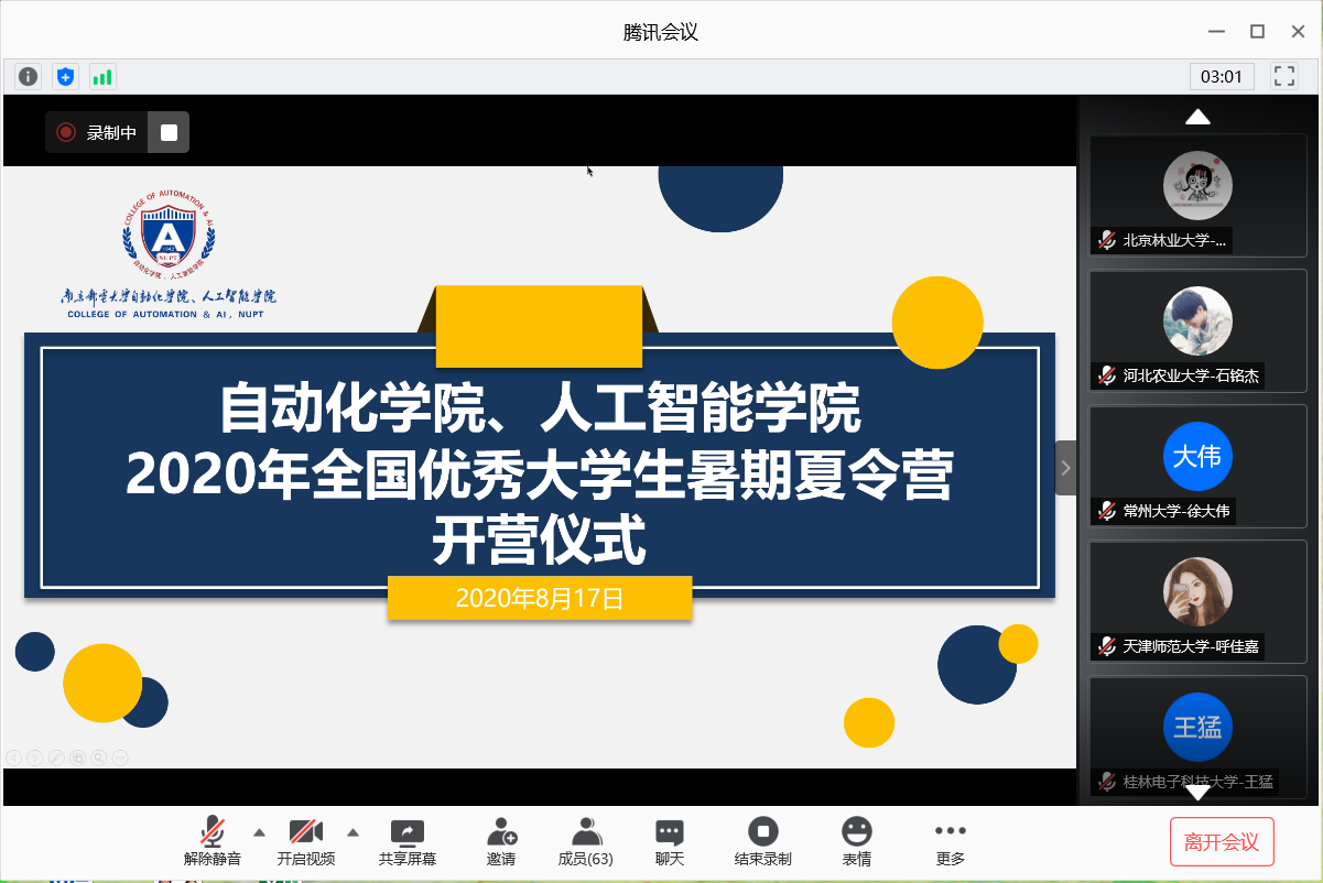 8月17日、18日,轮盘在线 2020年全国优秀大学生暑期夏令营通过腾讯会议在线上成功举行。经过学院的精心组织,本次夏令营活动共遴选七十二名来自全国各高校的优秀学员参加。