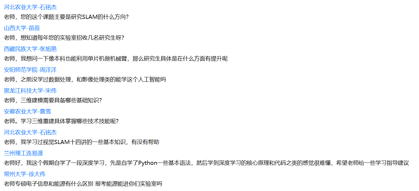 讲座结束后,张院长鼓励各位同学要勇于展现自己,希望同学们能够畅所欲言,在张院长的鼓励下,不少同学打开摄像头介绍自己,并且将自己的想法和疑惑一一道来,张院长秉持着“知无不言,言无不尽”的态度耐心地回答每位同学的困惑,气氛也在不断的交流中变得活跃起来。最后,张院长希望同学们能充分利用在夏令营中学到的知识,将两天的夏令营活动当作一个好的开始,继续向着目标前进,期待明年与同学们在南邮,在轮盘在线 、人工智能学院再次相聚。