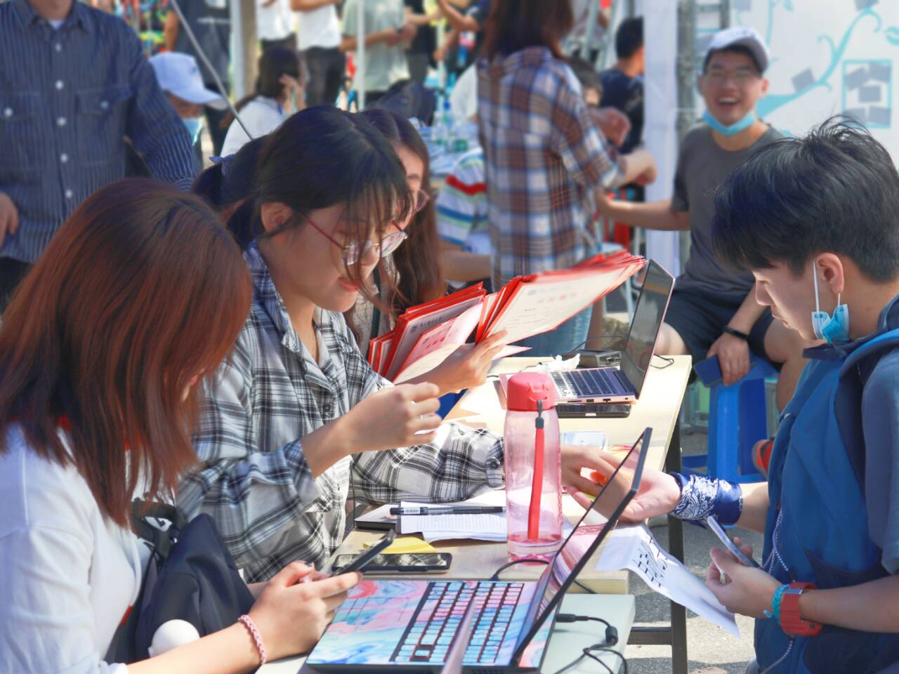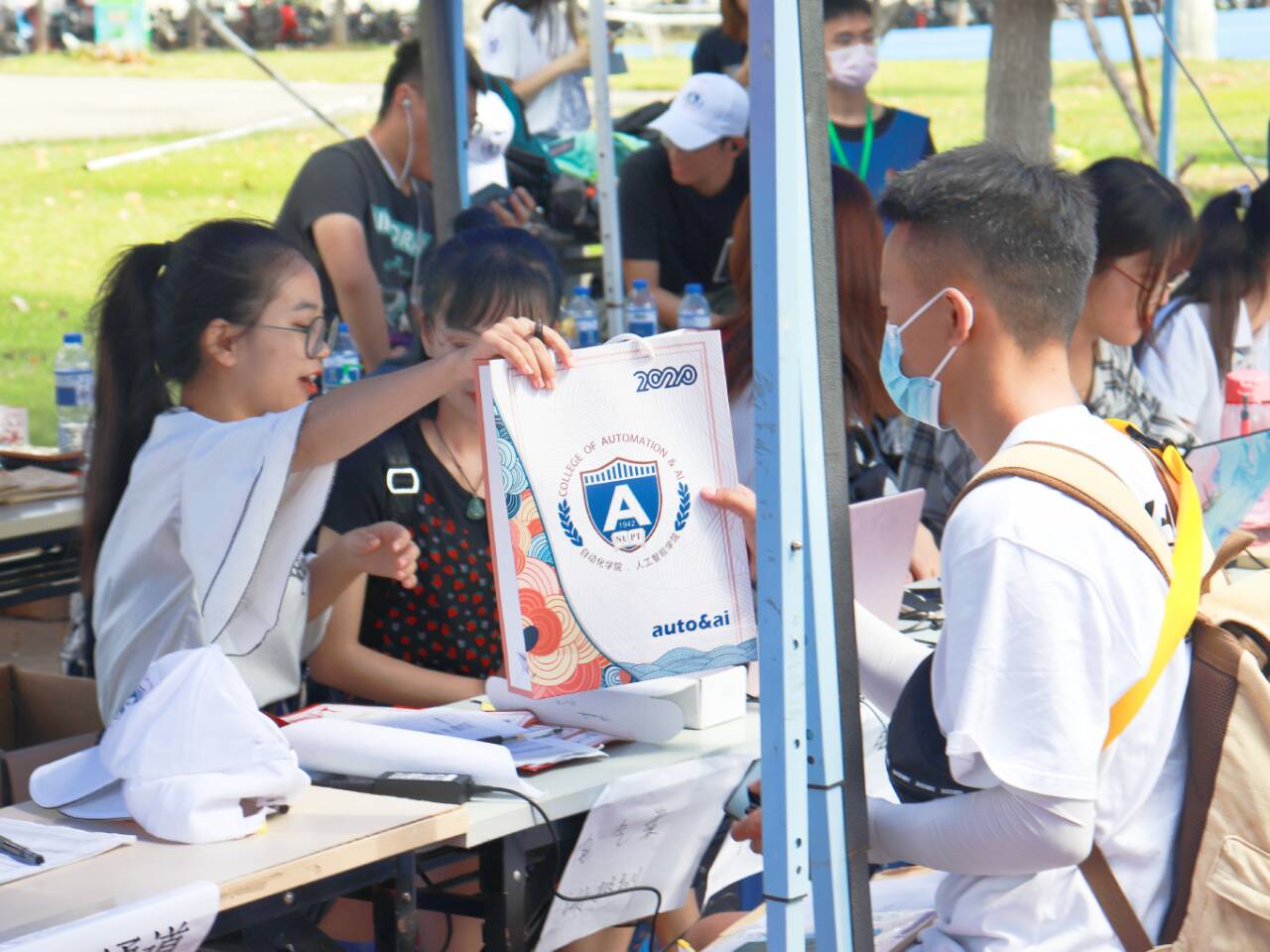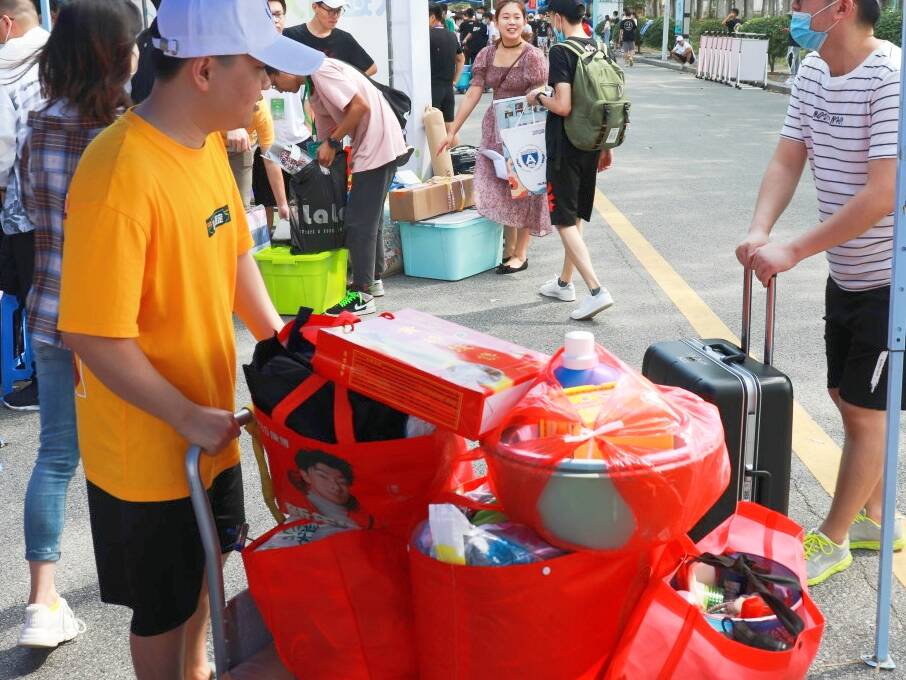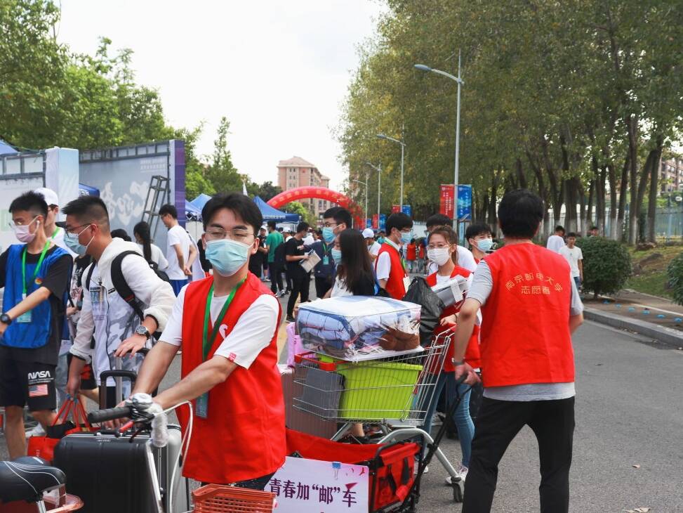 按照学校疫情防控要求,新生一律不得由家长陪同入校。自新生踏入校园,新生将由迎新志愿者全程陪同至迎新帐篷完成入学报到全部流程,他们也将收获来自轮盘在线 特别定制的“新生大礼包”,在专属签名墙上留下签名并拍照留念,最后由志愿者引导至新生宿舍。