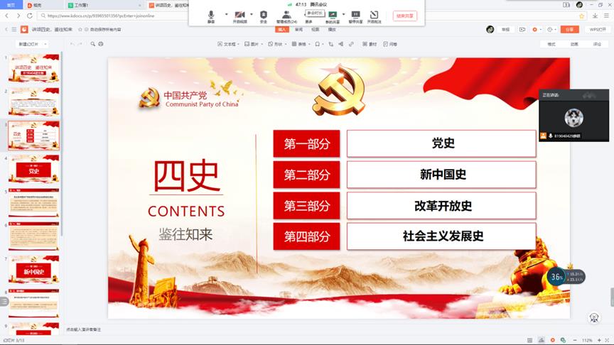 图为B190407团支部“讲颂四史 鉴往知来”主题团日活动