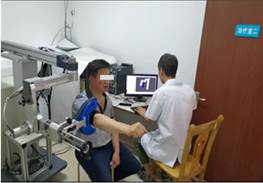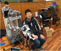 图3:上肢肩关节康复机器人临床测试 图4:手部康复机器人镜像训练功能测试
