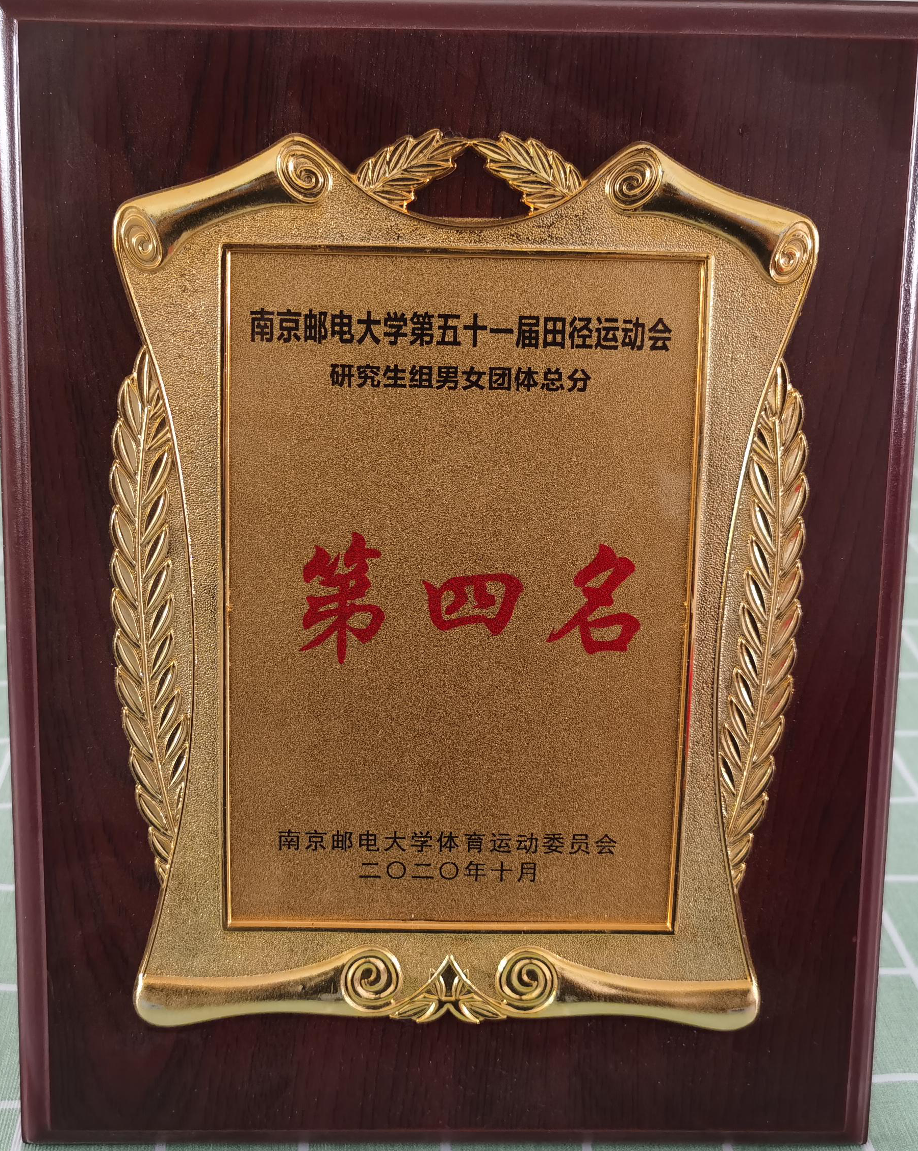 轮盘在线研究生组男女团体在2020年轮盘在线 第五十一届田径运动会中荣获第四名