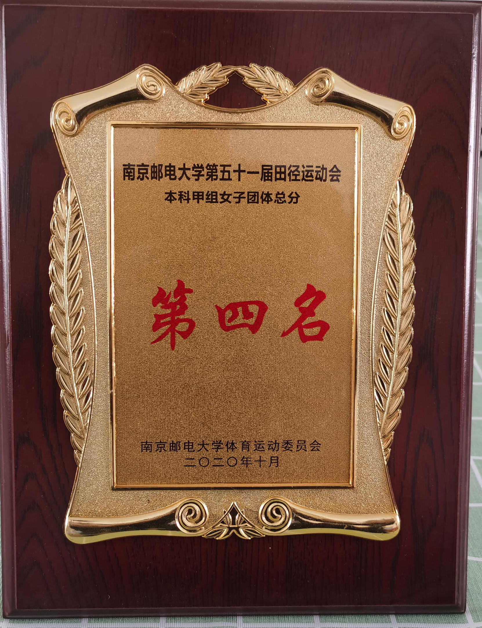 轮盘在线本科甲组女子团体在2020年轮盘在线 第五十一届田径运动会中荣获第四名