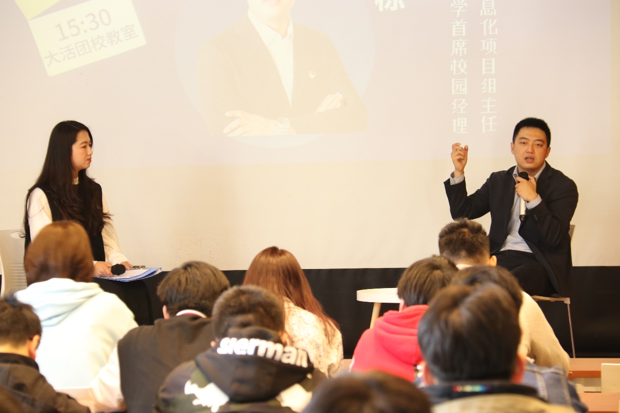 本次活动邀请了学院杰出校友赵栋做专题访谈,学院研究生、本科生共计50余人来到活动现场。2018级仲露同学担任主持人。