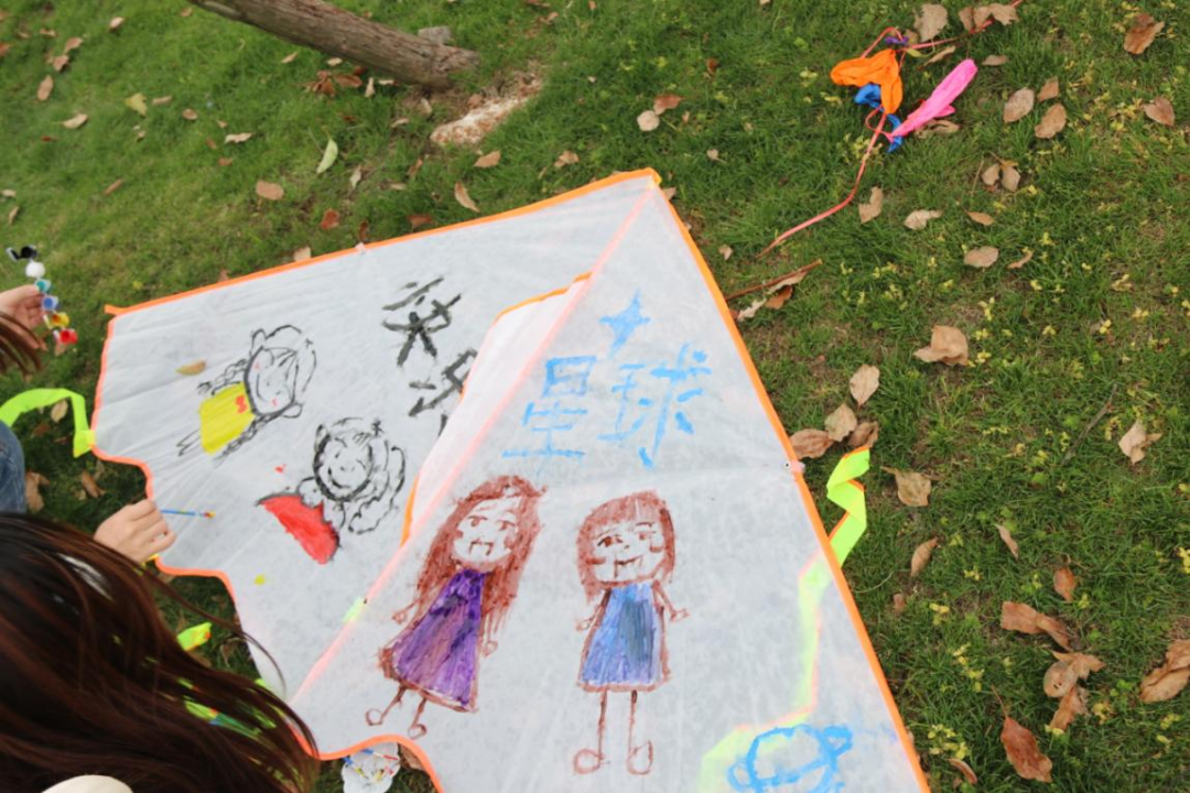 游戏过后,心协和学生会共同组织全体同学进行风筝DIY制作以和放飞,大家分组合作,在空白的风筝上描绘自己的所感所想,或纪念缤纷的大学生活,或展望无限可能未来,或赞颂我党的百年峥嵘……一只只被同学们精心装饰过的风筝,伴随着和煦暖风,缓缓升空,在蓝天留下了多彩的印记。