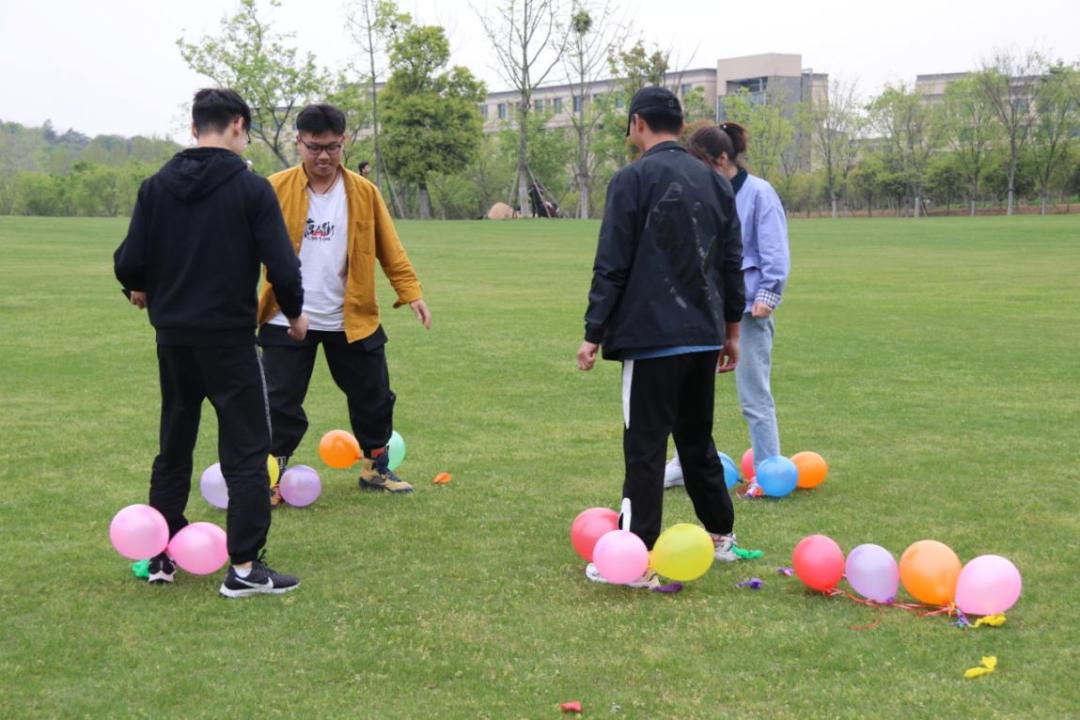 活动伊始,心协组织大家进行了踩气球小游戏,五颜六色的气球绑在同学的脚踝上,比拼的是谁先把对方脚上的气球踩完并保留下自己的气球。气球跟着大家的脚步上下舞动,草坪上充盈着同学们的欢声笑语,踩走烦恼,也带来了欢乐,不断拉进成员间的距离,调动着大家的积极性。