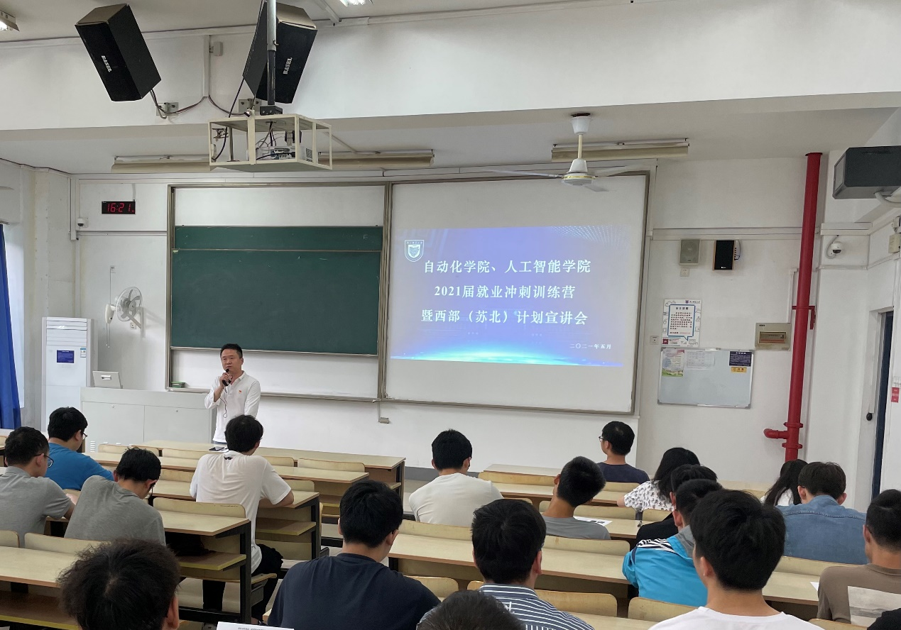 在教2-305召开2021届毕业生就业冲刺训练营暨西部(苏北)计划宣讲会。学院党委副书记、副院长陈迪生、校团委素质拓展部部长柏杨出席会议,2021届就业去向未定同学参加会议。会议由2017级辅导员仲鹏达主持。
