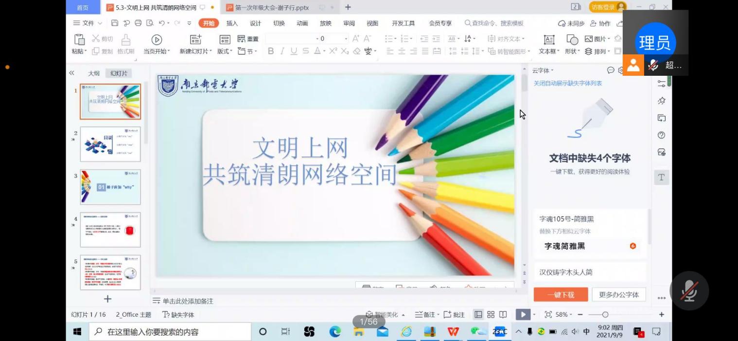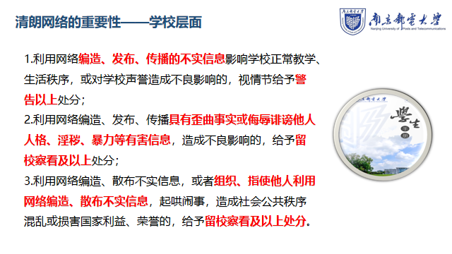 学校高度重视校园网络文化建设,注重培养师生网络文明素养。为进一步发挥好网络平台的教育功能,用科学理论、先进文化、主流价值引导网络空间发展,9月9日上午轮盘在线 、人工智能学院全体新生参加了“文明上网,共筑清朗网络空间”主题教育,活动由新生辅导员谢子行主持。谢老师首先从学校和国家层面向大家强调了遵守网络文明公约的重要性,接着通过“洁洁良”等实际案例为同学们分析了网络不文明行为及其严重后果,呼吁同学们依法上网、理性上网、文明上网。