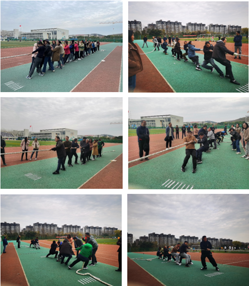 稍事休息后开始拔河比赛,各工会小组代表队情绪高涨,参赛的老师们都扎稳脚跟,身体后倾,有节奏的一起使劲,齐心协力,坚持到底,勇争拼搏。每位参赛老师表现出的坚强勇敢、团结协作精神深深地感染了在场的每个人。啦啦队也纷纷融入激烈的比赛中,为运动员们加油鼓劲,充分展现了团结协作的良好精神。