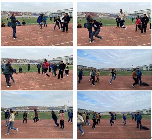 活动伊始,全体教职工在体育馆楼梯集合,拍照留念后,来到体育场,沿操场进行健身走。健身走活动结束后,开始集体跳绳和拔河比赛。身轻如燕的老师们行云流水,各显身手,表现出了不凡的实力。现场欢笑声、加油声,伴着响亮的欢呼声和热情的掌声,把现场的气氛推向一次又一次的高潮。