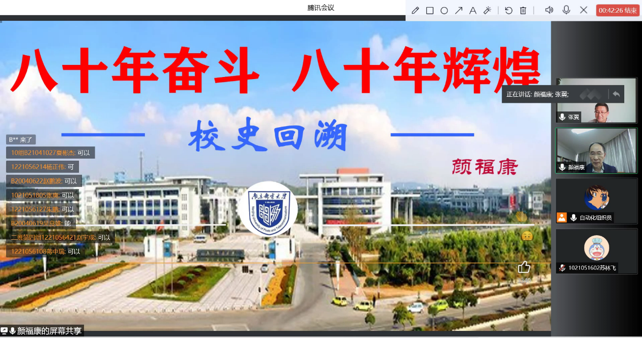 颜老师的讲座内容详实、催人奋进,让同学们在充分了解南邮历史的同时,也能更好地体会南邮精神,融入南邮环境,做更好的“南邮人”。