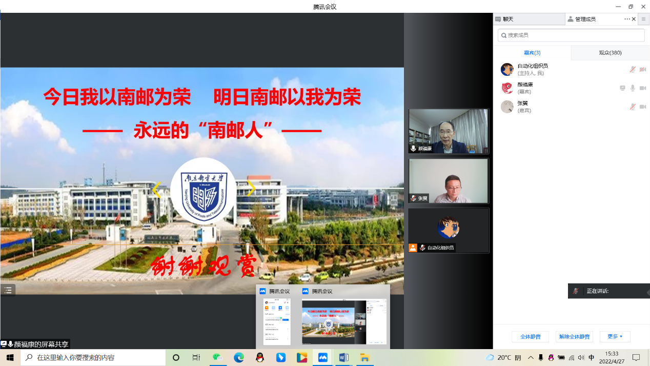 4月27日,轮盘在线 轮盘在线 、人工智能轮盘在线 入党积极分子聆听了由校关工委颜福康老师带来的“八十年奋斗、八十年辉煌”红色校史主题讲座。根据学校疫情防控要求,本次讲座全程采用线上形式开展。