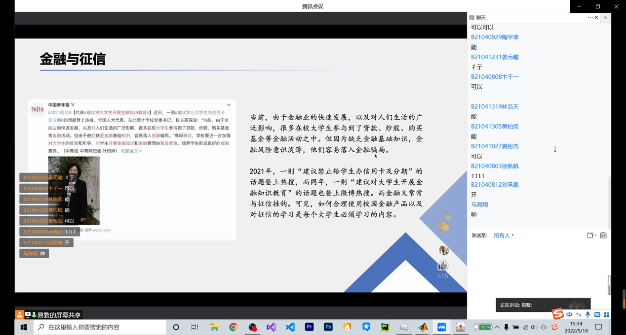 2021级新生诚信教育从三个方面展开:金融征信、发生在身边的电信诈骗以及诚信考试。大一新生许多都是刚刚离开家庭,独自在外求学,对于金融征信等的知识和了解较为欠缺。本次教育以实际案例为引,深入浅出的向学生讲述了征信的重要性和不良校园贷的危害。接下来,辅导员们以本学期同学们所接触到的电信诈骗为例子,解析了诈骗过程中诈骗者的一些惯用手段和预防措施。同时辅导员反复提醒同学,诈骗的手段总是在不断变化,防不胜防,因此不转账、不下载陌生APP、不给予其他人自己的个人信息等底线一定要守牢。