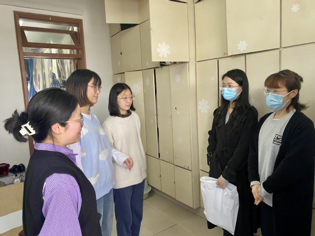 关爱进宿舍,温情暖人心。孙书记和辅导员老师们逐间走访学生党员寝室,张贴党员寝室门贴。其间,孙书记详细了解了学生党员的学习、心理和生活状况,着重关心大家对于未来的规划,从思想动态、专业学习、生活习惯、宿舍卫生、升学方向等方面与学生党员进行了沟通探讨,教育引导。孙书记对学生党员寄予厚望,他强调党员亮身份不仅是一份荣誉,更是一份责任与担当,学生党员要不断严格要求自己,自觉接受同学们的监督,团结同学,关注同学,帮扶同学,充分发挥学生党员的示范作用。